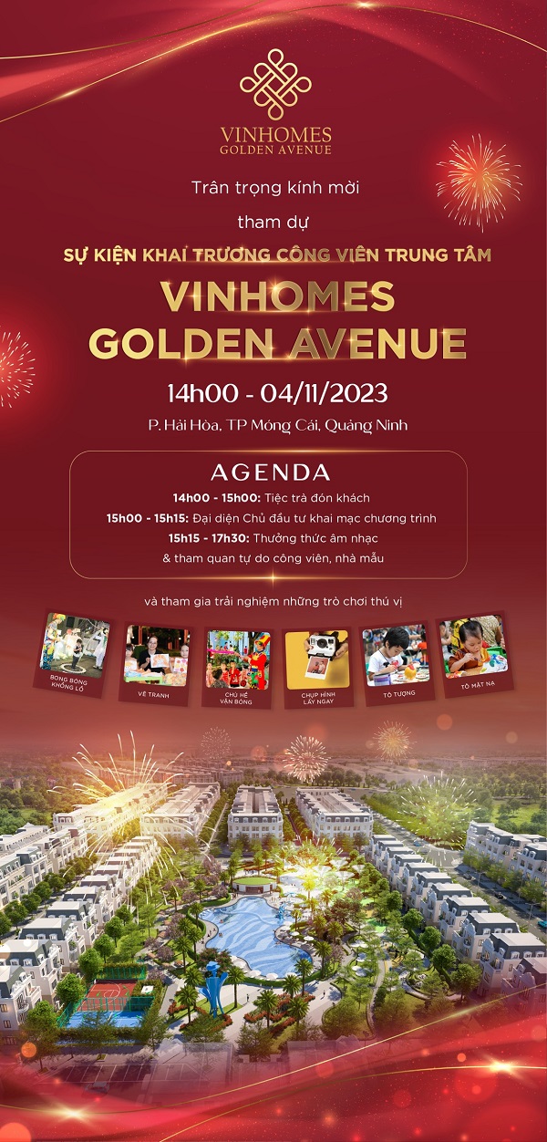 Thư Mời Khai Trương Công Viên Phân Khu NewYork Vinhomes Bắc Luân Móng Cái Golden Avenue